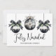 Skicka varma välgångnsönskningar med detta eleganta julkort med utfyllt motiv, med en minimalistisk framsidesdesign med tre svart-vita vattenfärgskulor, kompletterade med grön eternit och detaljer i form av söta band. "Feliz Navidad" är skrivet med graciös skrivstil, med ditt efternamn under i en klassisk serif-teckensnitt för en personlig touch. Du kan också ändra hälsningen så att den passar din stil.