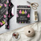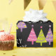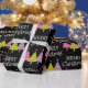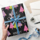 Anpassa Julklapp till julhelgen på ett unikt sätt med den här elegant- och söt presentfigursättningsdesignen med en söt rosa, lila och grönt träd mönster med vit "God jul"-text på svart bakgrund.