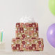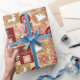 Elegant God jul Red Guld Collage Wrapping Papper Gift Wrap har ett mönster i julens inslag som snöflingor, Julgranar, renar, tomten och hans slift i ett lappverk av rött, guld, vitt och tartan med texten "God jul" i det moderna kalligrafiskriptet. Perfekt för presenter som täcker in julklappar och helgdag. Skapat av Evco Studio www.zazzle.com/store/evcostudio