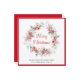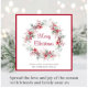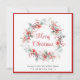 Julhälsningar av elegant med en vattenfärgad andedräkt av röda blommigtar och bär och säsong sage grönt grey. "God jul" skrivs i ett skript med snyggten red. Anpassa hälsning och namn i enkel modern typografi.