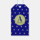 Elegant Gold & Blue Star Pattern Monogram Presentetikett