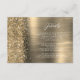 This elegant modern wedding details enclosure card features a gold brushed metal background image sprinkled with gold faux diamond glitter. Customize the white text, with the title "Details" in stylish handwriting script and the remaining text in sans serif font. The reverse side features a matching gold brushed metal and faux glitter design.
