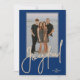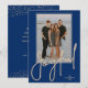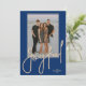 Elegant Gold JOYFUL Script on Blue Photo Christmas Julkort