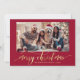Modern Elegant Script Red and Gold One Photo Merry Christmas Holiday Card. This festive holiday card features a stylish whimsical ‘Merry Christmas’ greeting in elegant hand-lettered calligraphy on red background. The text is displayed in a faux gold brush script with swashes, beautifully set against a rich red background. The reverse side showcases pre-made message in gold on red background. Perfect for sharing holiday cheer with family and friends during the Christmas season.