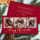 Elegant Gold Script Red 3 Photo Collage Christmas Julkort