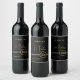 Elegant Gold Signature Monogram on Black Vinflaska Etikett