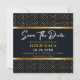 Gala sparar datumkortet. Snyggt elegant Spara Datumfunktionen har guldfärgat inslag i kombination på framsidan och information om evenemanget.