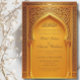 Fira bröllop i stil med denna inbjudan från elegant bröllop som innehåller en vacker gyllene islamisk arkitektur med ord "Bismillah Ilrahman Ilrahim".