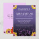 Lägg till stil i din bröllopsinbjudan med den här blommigt-temade designen, som innehåller elegant-vita bokstäver med lavender lila-konetti och färgstarka afrikanska daisy på ljusa, svarta och violetta-lila-till-svarta bakgrunder. Anpassa med namn, bröllop-datum och platsuppgifter för nya lyweds. Lägg till meddelande efter behov. Design © W.H. Sim. Se mer på zazzle.com/expressionsoccasions