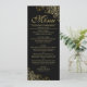 Den här vackra menyn kommer att lägga lite stil till ditt bröllopsmottagande. Den har en vacker design med ornerade golden faux-folier och snurrar på en klassisk svart bakgrund. Det finns utrymme för namn från paret och bröllop, och texten är helt anpassade. Elegant, klass och glam, den här menyn kommer att lägga till en luft av sofistikering och ära till firande.