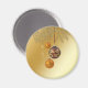En ädel och elegant julillustration: guldfärgat julgran grenar med hängda julbalkar på gyllene bakgrunder.