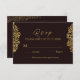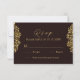 Den här OSA kort bär en elegant och lyxbedövande estetik som perfekt kompletterar bröllopsinbjudan. Bakgrunden är en djup, brun rik, som förstärker de gyllene dammmönstren som placeras symmetriskt på båda sidor. Fördämningen är mycket prydnadsformad, med flytande kurvor, blommigt snurrar, och mycket komplicerad och tydlig att ge är ett regalt, baroque-inspirerat utseende. Det krympande guld står vackert mot mörken, skapar det dekorativa kant stå ut när texten ramas in i mitten. Typografin bidrar också till den förfinade utformningen. En blandning av kursiv kalligrafi och klassisk serif typsnitt i guld förenar allt och säkerställer harmoni med de fuktiga accenterna. Layouten är ren och oren, med den ornerade guld-teckningen som ger rikedom utan att övervältra kortet. På det hela taget är denna OSA kort designad för projektsofistikering, tradition och elegans, med inslag som den mest slående punkten, som förvandlar ett enkelt responskort till ett påstående av stil och lyx.
