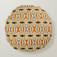 Denna unika runda kudde har en abstrakt mönster i den gyllene orangen och silver.