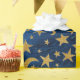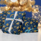Elegant Golden Stars och Måne Blue Navy Marble Presentpapper