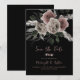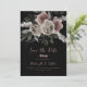En fantastiskt vacker blommigt arrangemang med ro, löv, bröst och horn får spara datum meddelande att framträda. Med handskrivna manusskrivna calligraphy typography läggs elegantens utseende till. Perfekt för ett gotiskt bröllop eller Halloween spara datum meddelande. Se samordna saker i vår butik, Enchanted Finch.