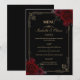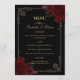 Elevate your reception with this elegant gothic romance wedding menu. Designed with a deep black background, black and dark red roses, ornate gold borders, and elegant Gothic calligraphy, it creates a moody yet romantic Victorian-inspired aesthetic. Perfect for couples seeking a darkly elegant, Gothic fairytale wedding.