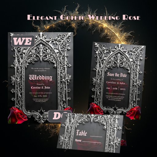 Elegant Gothic Wedding Rose Frame Spara Datumet