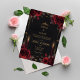 Sätt tonen för din stora dag med denna gotiska bröllopsinbjudan i romantisk stil. Designad med en djup burgunderfärgad bakgrund, svarta och mörkröda rosor, utsmyckade guldbårder och elegant gotisk kalligrafi, skapar den en stämningsfull men ändå romantisk viktoriansk inspirerad estetik. Perfekt för par som söker en mörkt elegant, gotisk sagobröllop.