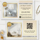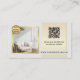 Visitenkort med dina egna foton på framsida och baksida, inramade av en elegant enkel design i ljust grått och guld. En mall för din logotyp, anpassad QR-kod samt ikoner för sociala medier läggs till. Du kan antingen anpassa eller ta bort dessa. Perfekt för inredningsdesigner eller professionell heminredning eller en möbelaffär eller reparationsverksamhet.
