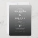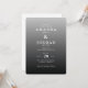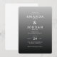 Denna eleganta bröllopsinbjudan har en minimalistisk design med en övergångsrik bakgrund som går från ljust till mörkgrå, vilket skapar ett sofistikerat och modernt utseende. Den rena serif-typografin är centrerad för en balanserad komposition, vilket förbättrar läsbarheten och formaliteten. Med sin återhållna gråskalepalett och skarpa digitaltryck förmedlar inbjudan en atmosfär av förfining, perfekt för par som söker en tidlös och klassisk estetik för sin speciella dag.