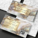 Lyft din varumärke med detta lyxiga visitkort med en fängslande vattenfärg-marmor-design i mjuka grå, beige och vita nyanser. Den subtila designen, accentuerad med skimrande guldfolie och elegant skrivstil, skapar en sofistikerad look perfekt för frisörer, sminkartister och andra skönhetsspecialister. Den metalliska guldramen framhäver ditt namn och dina tjänster, medan QR-koden på baksidan möjliggör enkel åtkomst till din portfolio eller sociala medier. Gör ett varaktigt intryck på potentiella kunder med detta unika och stilfulla kort.