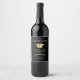 Elegant svart studentfest vin-etikett med en hylsa av klass guld, Student och student namn, skolår och klassår i klassisk guld serif-typografi.