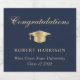 Elegant blått studentfest med gnisttändning av vin med en hylsa av guld, "Grattisar" i ett klassiskt skript och student namn, skolår och klassår i enkel modern typografi.