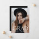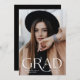 Modern studenten-meddelande med student fullt-utfallsfoto på framsidan med "Grad" i en elegant vit textövertäckning. Anpassa framsidan av det enkla studenten-tillkännagivandet med student namn och studenten. Meddelandet återgår till visning av ett ytterligare foto med ditt personliga meddelande som visas nedan. 2-fotot studenten-meddelandet är perfekt för både high school och College student.