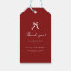 Elegant Graduation Party Wine Red Script Coquette Thank You Gift Tags. Classic and simplistic, burgundy and white graduation party gift tags, designed with script lettering, and a coquette aesthetic with a bow on top. Personalize with a custom thank you message graduate's name, year of graduation, and high school, college or university name.