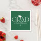 Celebrate your graduate with refined, modern style using these elegant graduation party napkins. Set against a stylish green background, the design features the word “GRAD” in a modern serif typeface, with a stylish graduation cap icon positioned above the “R.” The end of the “R” flows seamlessly into a dangling tassel that runs through the graduate’s name, school, and class year for a cohesive, high-end look.