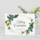 Elegant gran ädelgran järnek bär julhälsning firande kort.