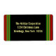 Anpassningsbar helgdag returetiketter underbara för julsäsongen. Utformningen Röd, grönt och guld rand gräns ger professionellen en klasssäker beröring, en klassbar returadress eller en frakttext och den svarta färgen är en fin kontrast som förbättrar designen. Området i mitten är redot för ditt eget namn och adress. Underbar för företag samt för personlig märkning. Ändra enkelt färg och teckensnittet stil i texten. Prova en annan bakgrund i färg i stället för svart om du vill. Klicka bara på "Anpassa" och "redigera" och klicka sedan på "bakgrund" för att ändra färg. En ren och snyggt helgdag. Finns i tre olika storlekar.