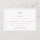 Detta enkla bröllop OSA i snyggt i ett modernt designkort i stil har ett naturligt typografiskt skript i elegant i klassiskt ro guld och vitt parat med traditionell ordalydelse för svar och val av måltid. Planerar man ett bröllop eller tittar man efter idéer? Utformningen är en perfekt för ett nyligen engagerat par som vill ha en vacker och unik bröllopsinbjudan som ska skickas till gästerna som kommer att matcha deras bröllop-decor och tema för deras ceremoni och mottagning i bröllop.