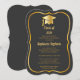 Elegant Graphite | Gold Cap Graduation Party Inbjudningar