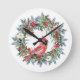 Elegant Gräs, frisk, rödkardinaljul Rund Klocka
