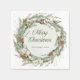 Dessa bedövande helgdag-blöjor har en julkrans med elegant botaniskt grönt löv och gräs-koner med blommor. Modern manuskalligrafi säger "God jul" och en subtil grönt vattenfärg stänk dekorerar kransens centrum.