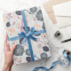 Elegant Grått Blue Peach Blommönster Presentpapper