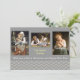 Elegant grått Chevron helgdag, jul, nyårskort för fotohälsning. Byt ut fotona mot ditt eget och lägg till ditt personliga meddelande så att det blir ett speciellt hälsningskort från din familj till dina vänner.