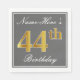 Den här enkla och elegant pappra napkin-designen innehåller ett meddelande som "Namn-här's 44:e födelsedag" (med "44:e" färgen faux guld-lik) i ett fyrkantigt område av grått färgad med en enkel gräns-kontur. Namn är i en text som liknar en skript med vit färgad och kan anpassas. Napkins som dessa kan kanske användas i en födelsedagsfest till någon som firar sin fyrtiofjärde födelsedag. [~Z0000191]