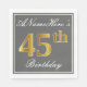 Den här enkla och elegant pappra napkin-designen innehåller ett meddelande som "ANamehär's 45:e födelsedagen" (med "45:e" färgen faux guld) i ett fyrkantigt område av grått färgad med en enkel kontur av gräns. Namn är i en text som liknar en skript med vit färgad och kan anpassas. Napkins som dessa kan kanske användas i en födelsedagsfest till någon som firar sin fyrtiofemårsdag. [~Z0000191]