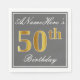 Den här enkla och elegant pappra napkin-designen innehåller ett meddelande som "ANamehär's 50:e födelsedag" (med "50:e" som har en ytliknande guld-färg) i ett fyrkantigt område med grått-färgad som har en enkel gräns-kontur. Namn är i en text som liknar en skript med vit färgad och kan anpassas. Napkins som dessa kan kanske användas i en födelsedagsfest till någon som firar sin femtioårsdag. [~Z0000191]