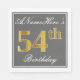 Den här enkla och elegant pappra napkin-designen innehåller ett meddelande som "ANamehere's 54:e födelsedag" (med "54:e" som har en ytliknande guld-färg) i ett fyrkantigt område med grått-färgad som har en enkel gräns-kontur. Namn är i en text som liknar en text med en vit färgad och kan vara personlig. Napkins som dessa kan kanske användas i en födelsedagsfest till någon som firar sin femtiofjärde födelsedag. [~Z0000191]