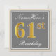 Elegant, Grått, Faux Guld 61:a födelsedagen + Namn Inbjudningar