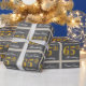 Den här enkla och eleganterna pappra designen har ett personlig som "FirstName's 65e Birthday" (med "65en" som har ett utseende som liknar faux/imitation guld) i en kvadrat med grått-färgad som har en enkel gräns kontur. Namn är i en elegant som är skript som liknar den vita färgaden och kan vara personlig. Att packa pappert som detta kan kanske användas när man fyller på födelsedagskalkyl för någon som firar sin sextiofemårsdag. [~Z0000222]