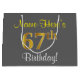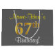 Den här enkla presentsäcksdesignen i eleganten innehåller ett personlig som "Namn-här's 67:e födelsedag!" (med "67:e" som har ett utseende som påminner om Faux/imitation guld) på en grått färgad-bakgrund. Namn är i skriptliknande gult-färgad och kan vara personlig. En sådan här personlig-födelsedagspressning skulle kanske kunna användas när en present eller gåva till någon som firar sin sextiosjunde födelsedag är ge. [~Z0000261]