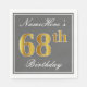 Den här enkla och elegant pappra napkin-designen innehåller ett meddelande som "Namehär's 68 Birthday" (med "68:e" som har en faux-guld-liknande färgning) i ett fyrkantigt grått-färgad-område med en enkel gräns-kontur. Namn är i en text som liknar en text med en vit färgad och kan vara personlig. Napkins som dessa kan kanske användas i en födelsedagsfest till någon som firar sin sextioåttonde födelsedag. [~Z0000191]