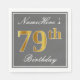 Den här enkla och elegant pappra napkin-designen innehåller ett meddelande som "Namehär's 79 Birthday" (med "79:e" som har en faux-guld-liknande färgning) i ett fyrkantigt område med grått-färgad som har en enkel gräns-kontur. Namn är i en text som liknar en skript med vit färgad och kan anpassas. Napkins som dessa kan kanske användas i en födelsedagsfest till någon som firar sin sjuttionionde födelsedag. [~Z0000191]