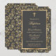 Elegant grått och blommigt baptism i guld som innehåller en kor i guld i en blommigt ram.