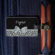 En chic och snyggt silver-grått och svart tagg för tagg med tagg för tagg av tagg med en färgad av elegant-grått som är fastbunden i en söt bugg. Anpassa det här trendiget genom att lägga till namn från din tonåring flicka. Platt utskriven bild, inte verklig båge.