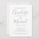 Med namnteckning stil namn kan den här enkla inbjudan till elegant och förlovningsfest vara personlig med din speciella händelseinformation i snyggt grått-brev på vit bakgrund. Designad av Thisisnotme©